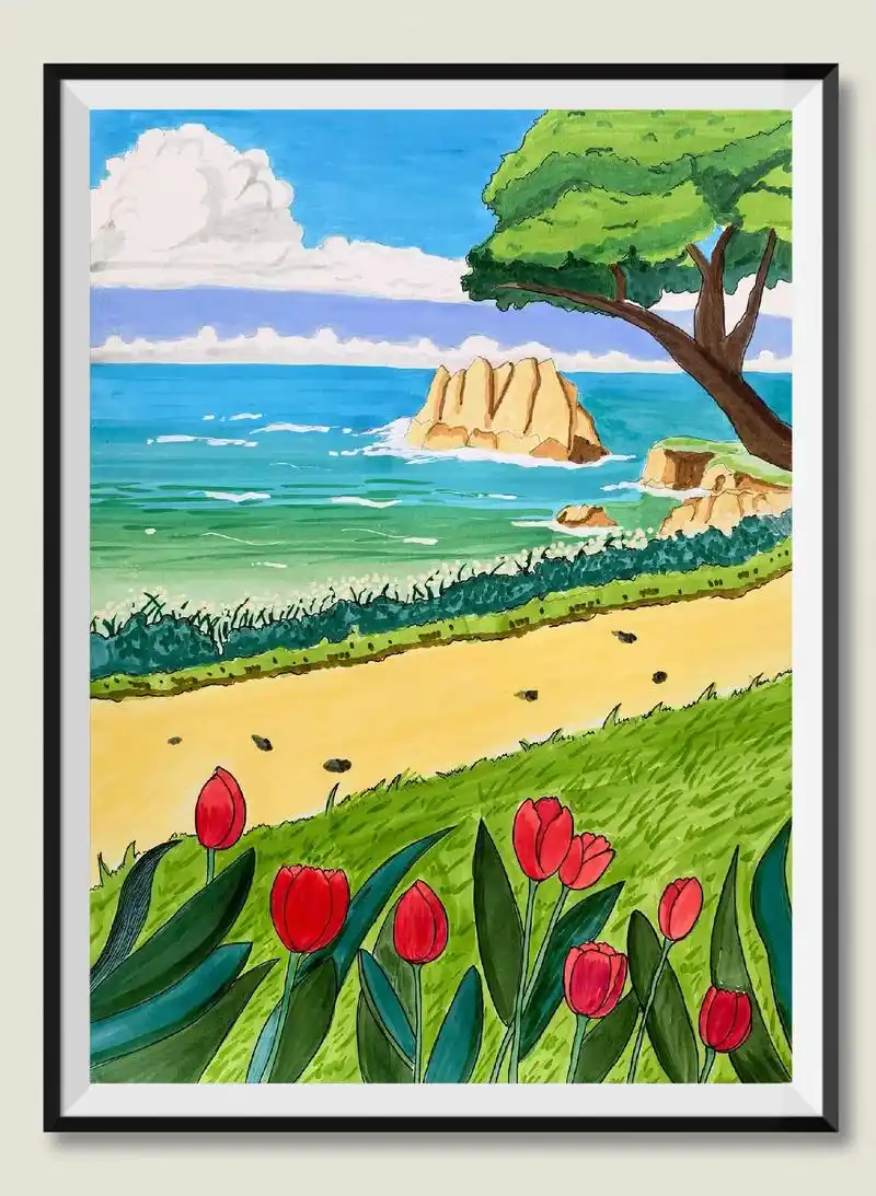 马克笔手绘,风景画.今天分享一幅简单的风景画,还是挺美的,超