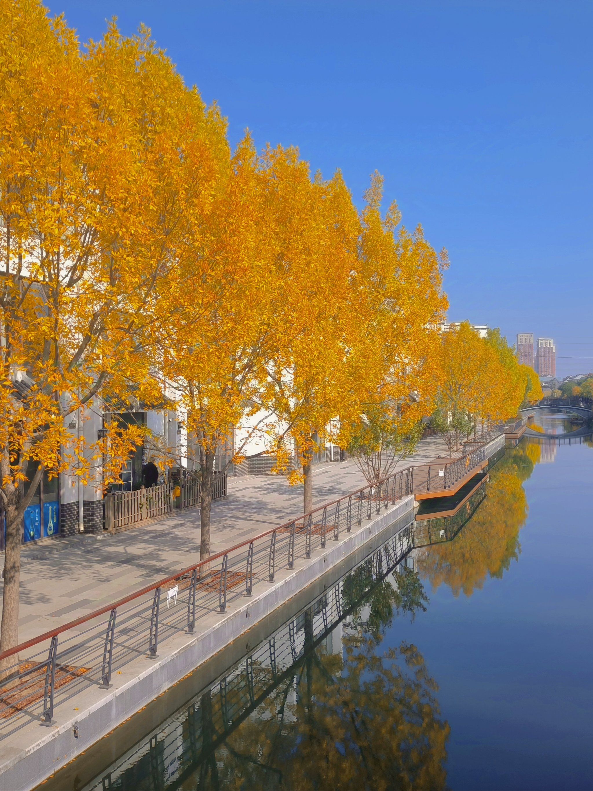 圆明园银杏大道秋日盛景实拍 🍂 秋天到了,树叶可能会因为一场风或