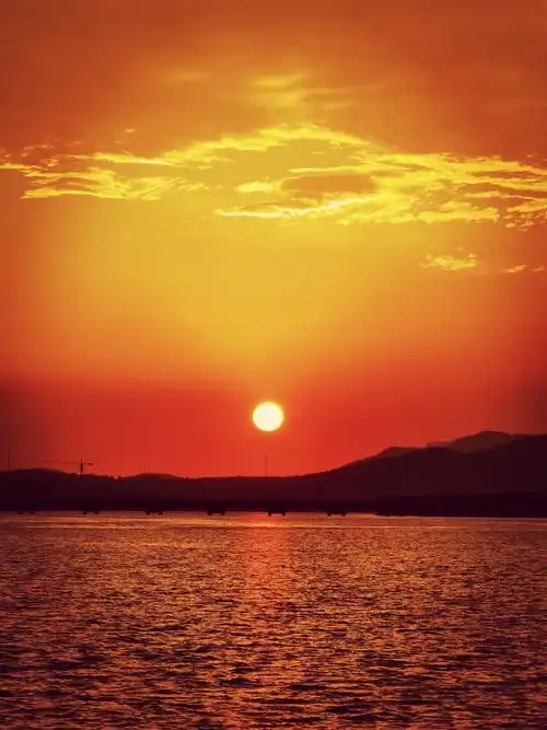 我的家乡哈尔滨松花江上夕阳西下黄昏日落和晚霞满天的风景
