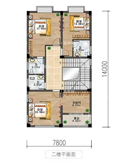 长方形的宅基地应该怎么设计?这栋7.8x14的农村三层小别墅了解下