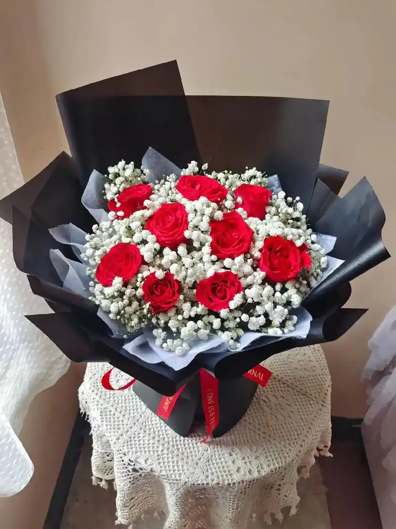 经典款9朵红玫瑰95.#客订花束 #我的花店日常 #一束花的 - 抖音