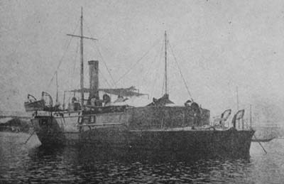图为福建水师购买的福胜舰 飞霆,策电二舰舰身长120英尺,宽30英尺,吃