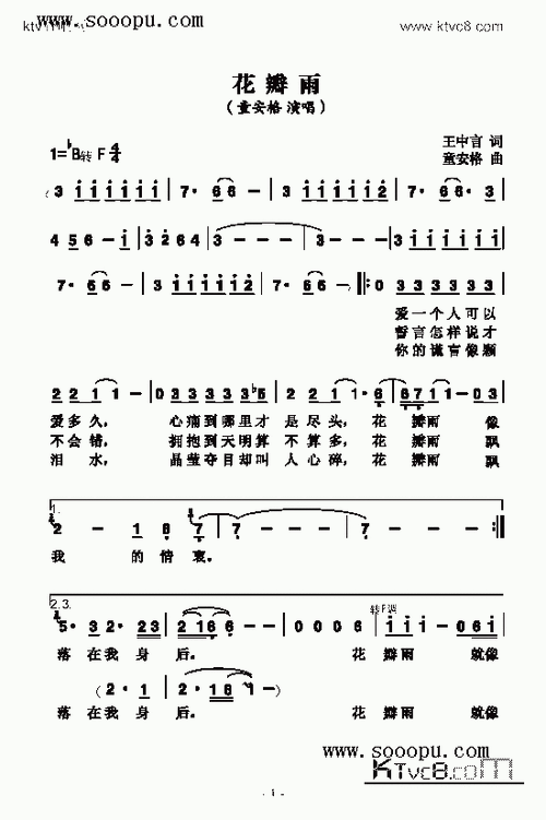 《花瓣雨》(童安格演唱)_歌谱简谱_歌词简介_曲谱资料