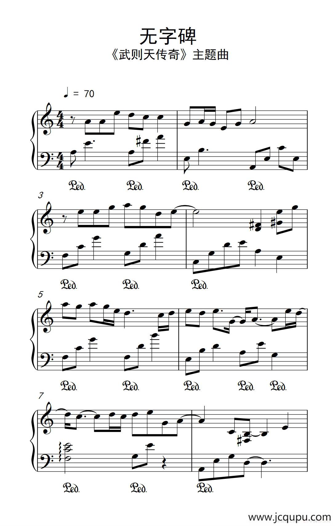无字碑_简谱_搜谱网