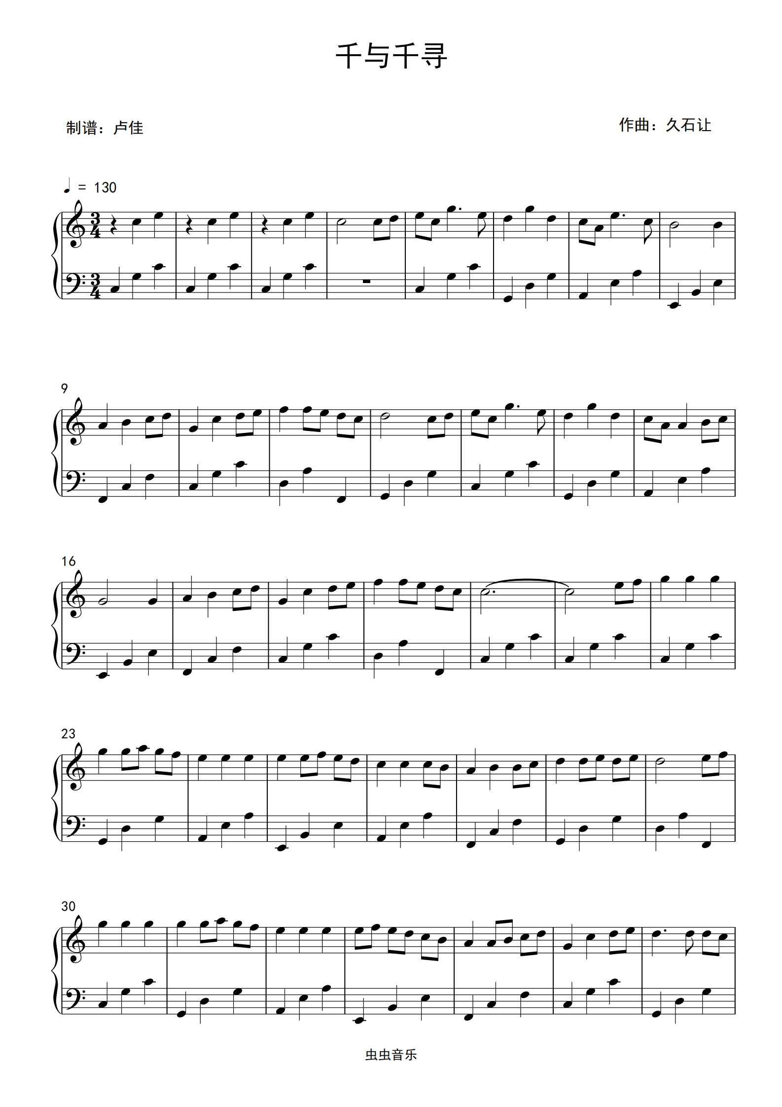 千与千寻 非常好听的插曲 简易版钢琴谱-钢琴上的美妙旋律-虫虫钢琴