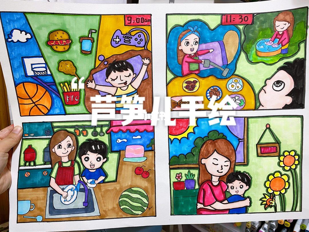 【手机绘画】我爱我妈,光辉伟大!母亲节的四格漫画