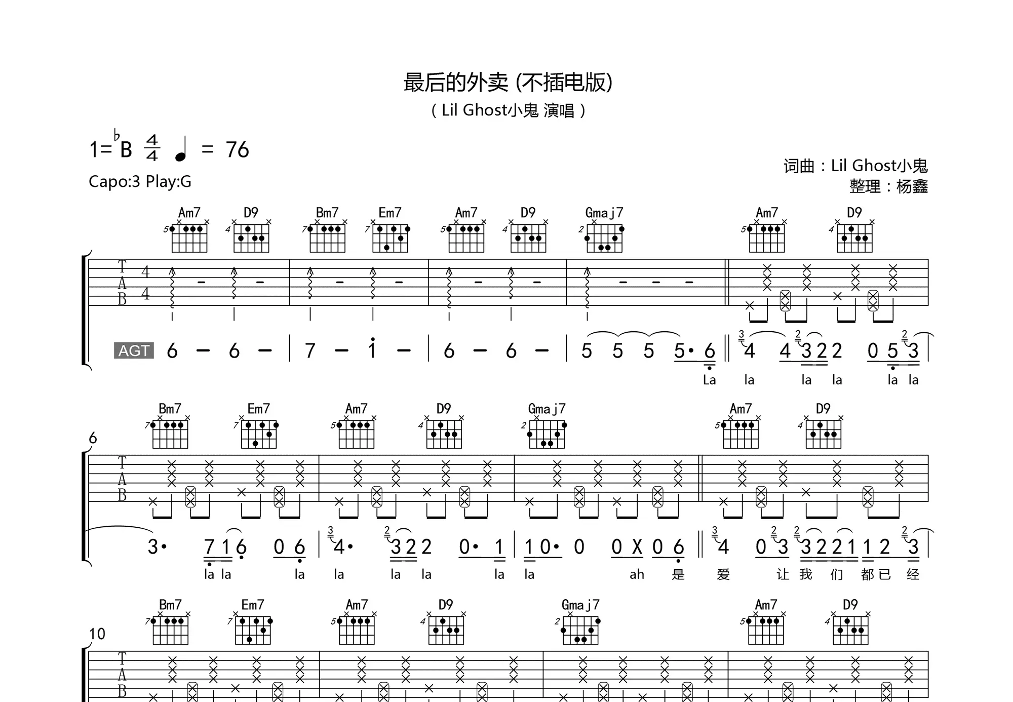 lilghost小鬼最后的外卖不插电版和弦功能谱简谱歌词吉他谱