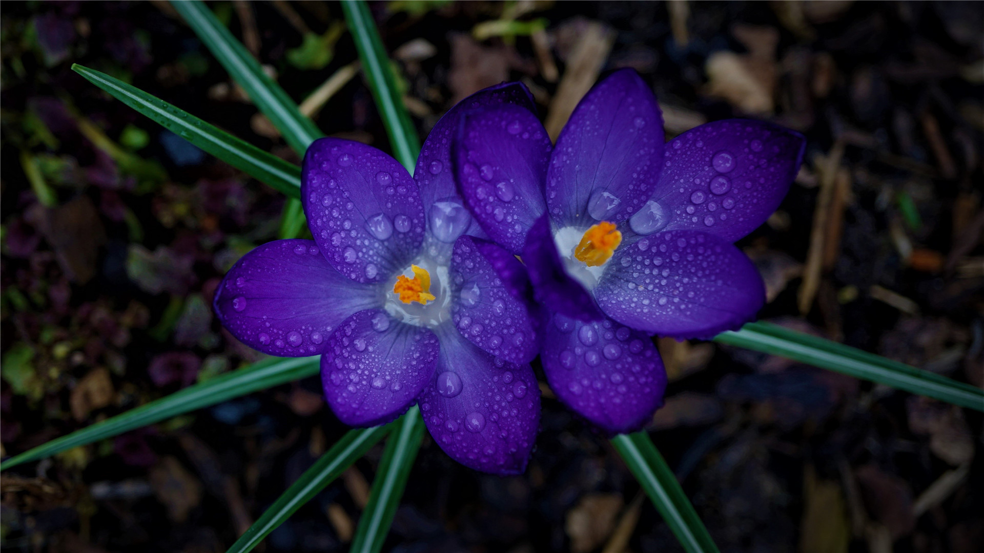 两个橙色和红色的花朵与露珠高清壁纸