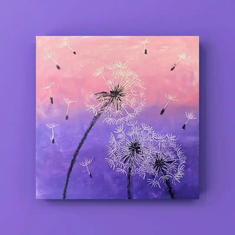 【油画棒】 2分钟新手也能画一幅"蒲公英纷飞"_哔哩哔哩_bilibili