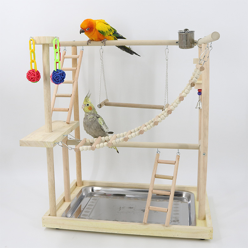 鹦鹉互动游乐场 训练架解闷站架 玄凤虎皮和尚牡丹小太阳实木架子 l款