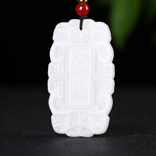 吉祥如意新疆羊脂白玉和田玉吊坠玉佩仿古件玉牌项链天然玉石