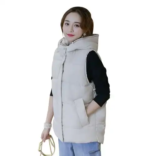 连帽棉马甲女女短款2023新款秋冬外套中年带帽子马夹背心外穿 隐藏