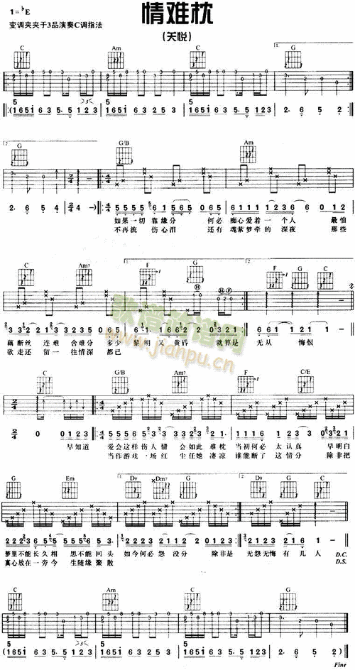 情难枕吉他谱(pdf谱,弹唱)_姜育恒
