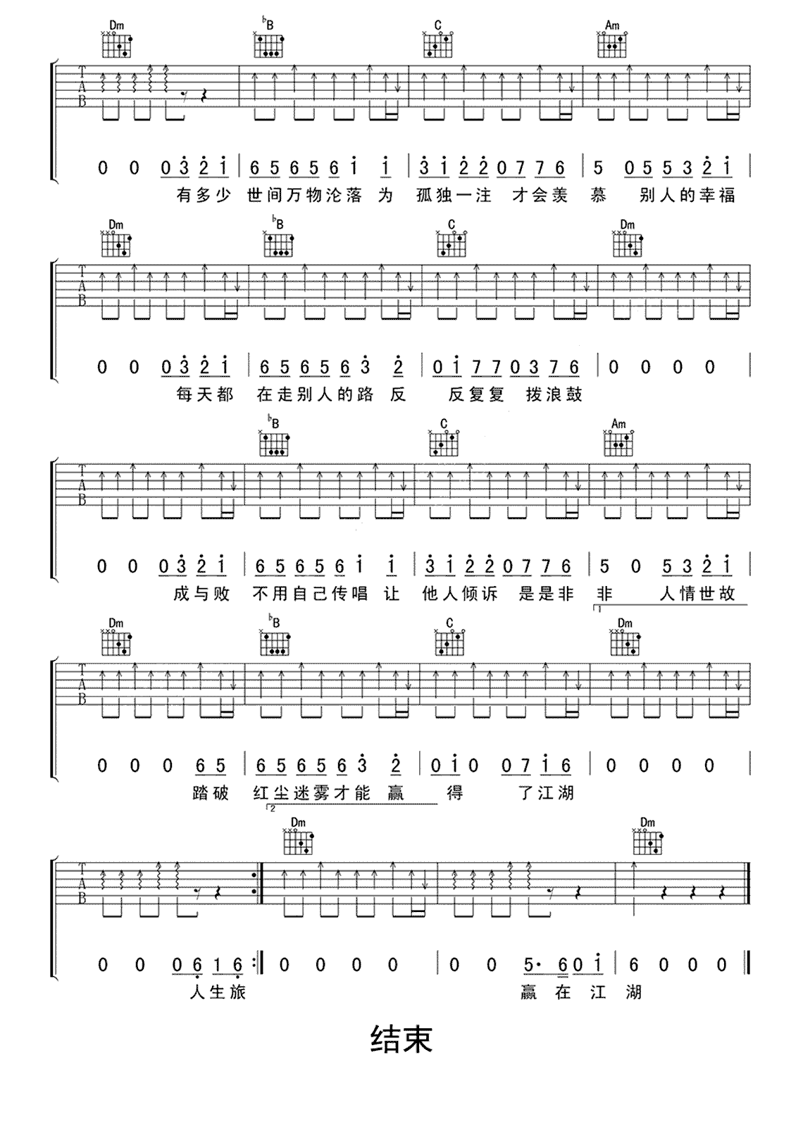 《赢在江湖吉他谱》_姜鹏_未知调_吉他图片谱2张 图1