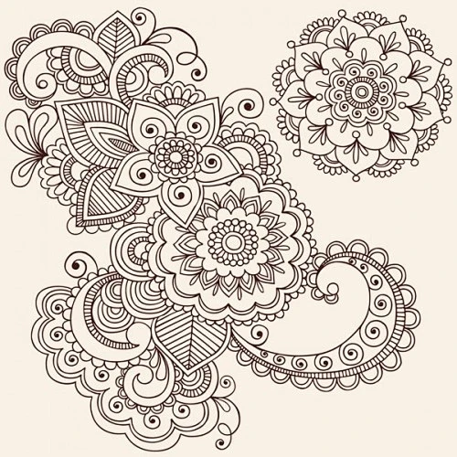 手绘藤蔓植物百合玫瑰花卉花环图案设计黑白手绘插画纹身图案线稿素材