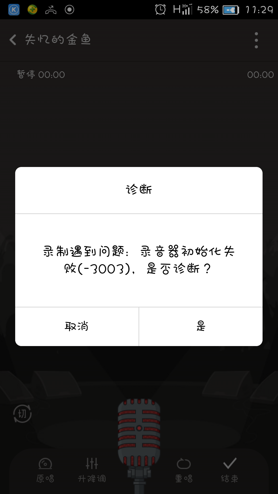 全民k歌录歌时出现录音初始化失败怎么办,录音权限一直开启着的.