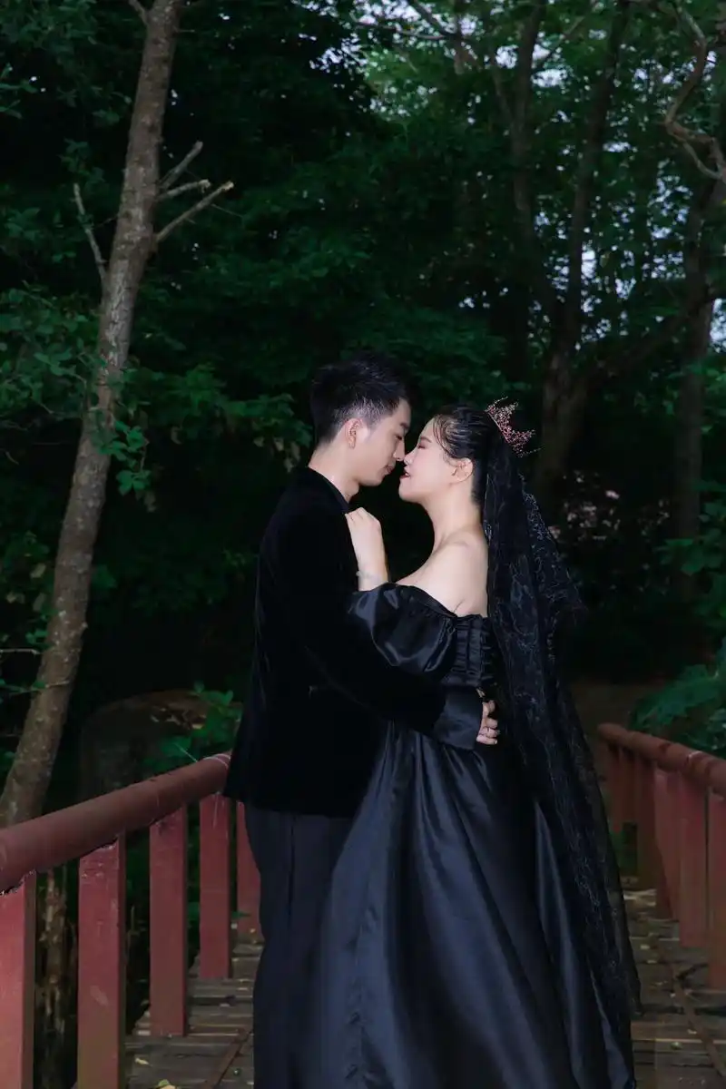 黑纱神秘感婚纱照07黑纱森系暗黑系婚纱照