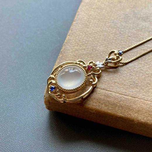 18k金镶嵌冰种白冰翡翠蛋面蜂巢吊坠