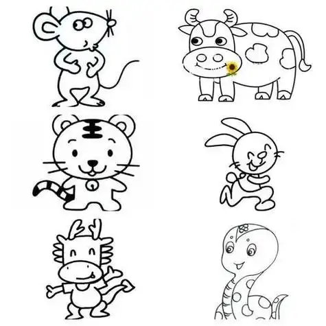12生肖动物简笔画图片 12生肖动物简笔画图片大全彩色