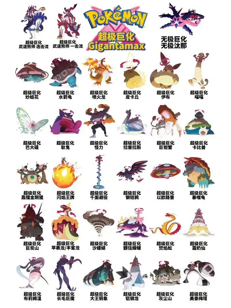 卡吉柰精灵宝可梦图鉴大全 1008款极巨化超进化种族值剑盾朱紫图鉴