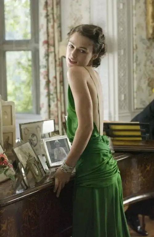 当年凯拉奈特利在《赎罪》里那条露背祖母绿连衣裙也是惊为天人,裙子