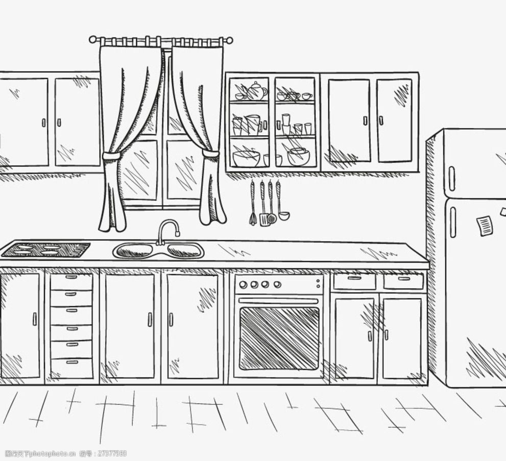 怎样用马克笔手绘厨房线稿篇- 虎课网