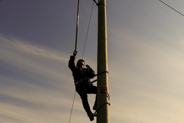 原来电力工人,都是这样爬电线杆的,让人开眼了!