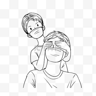 戴口罩蒙眼的父子