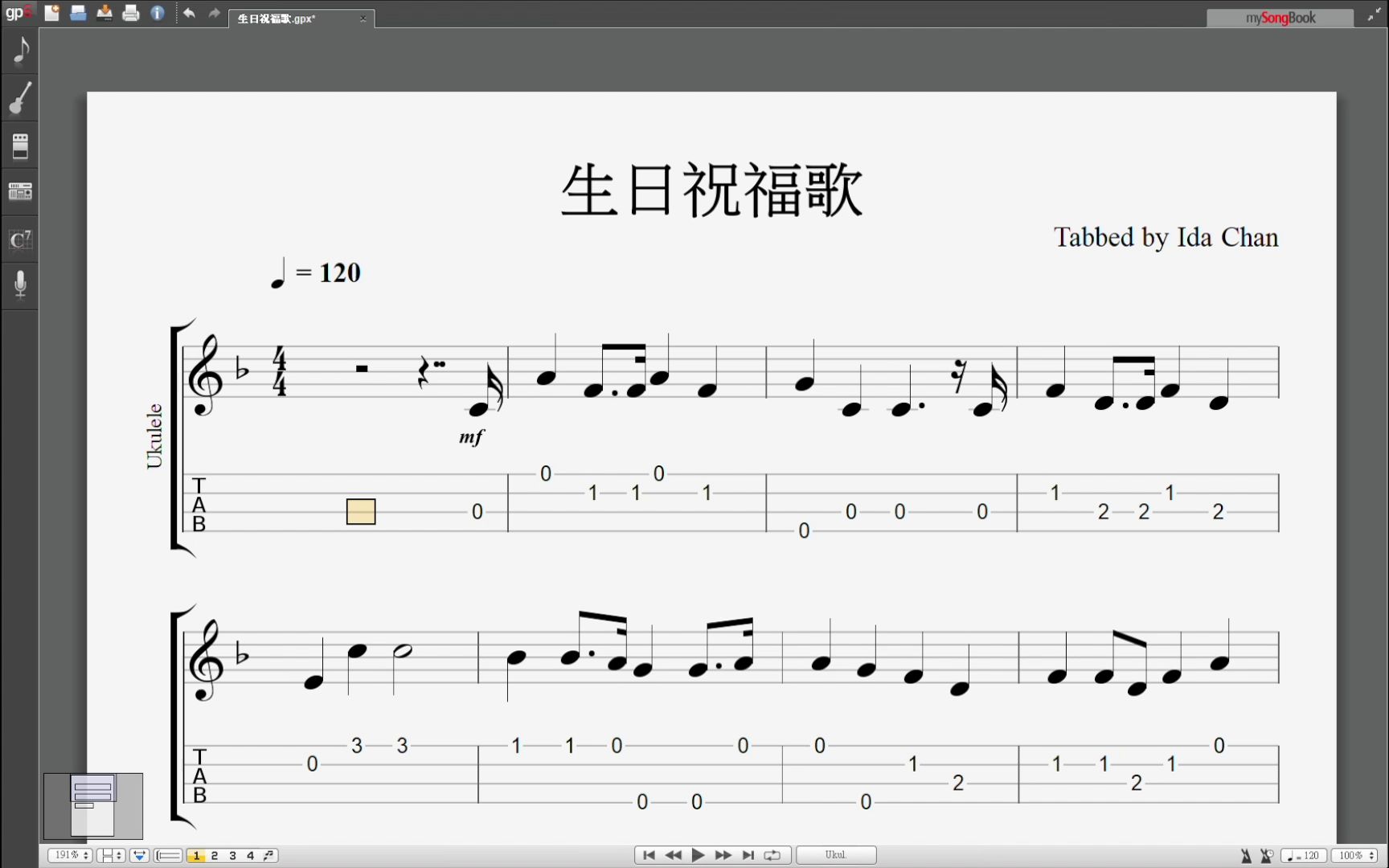 中国音乐学院尤克里里考级1级生日快乐曲谱示范