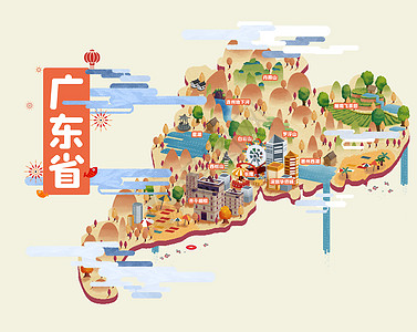 南挪威广东省旅游地图插画插画