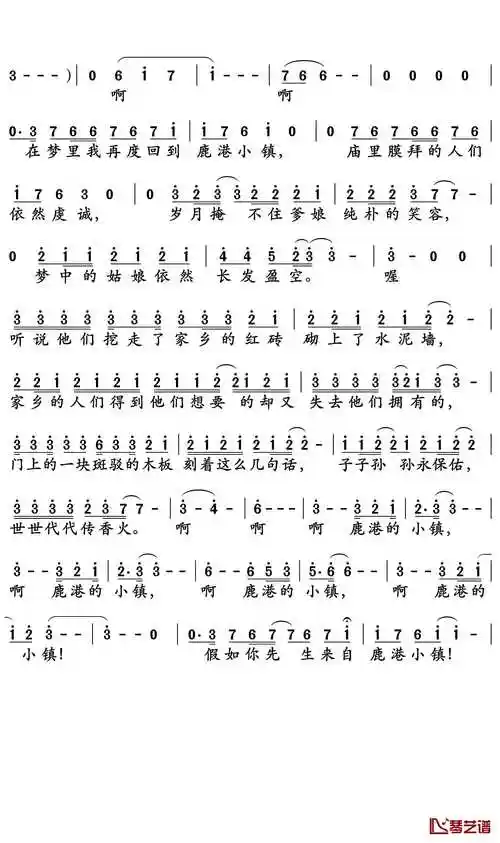 鹿港小镇简谱(图1)