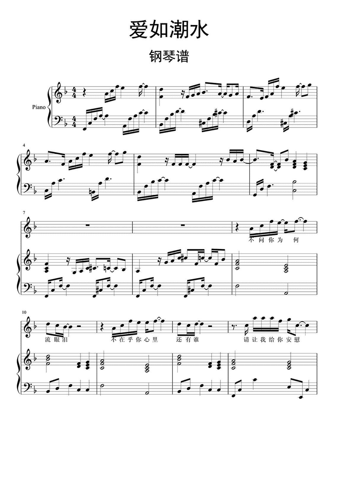 爱如潮水>, 爱如潮水>钢琴谱, 爱如潮水>e大调钢琴谱, 爱如潮水>钢琴