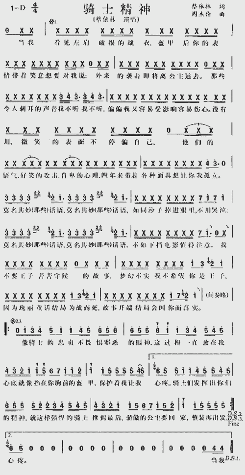 骑士精神 歌谱简谱网