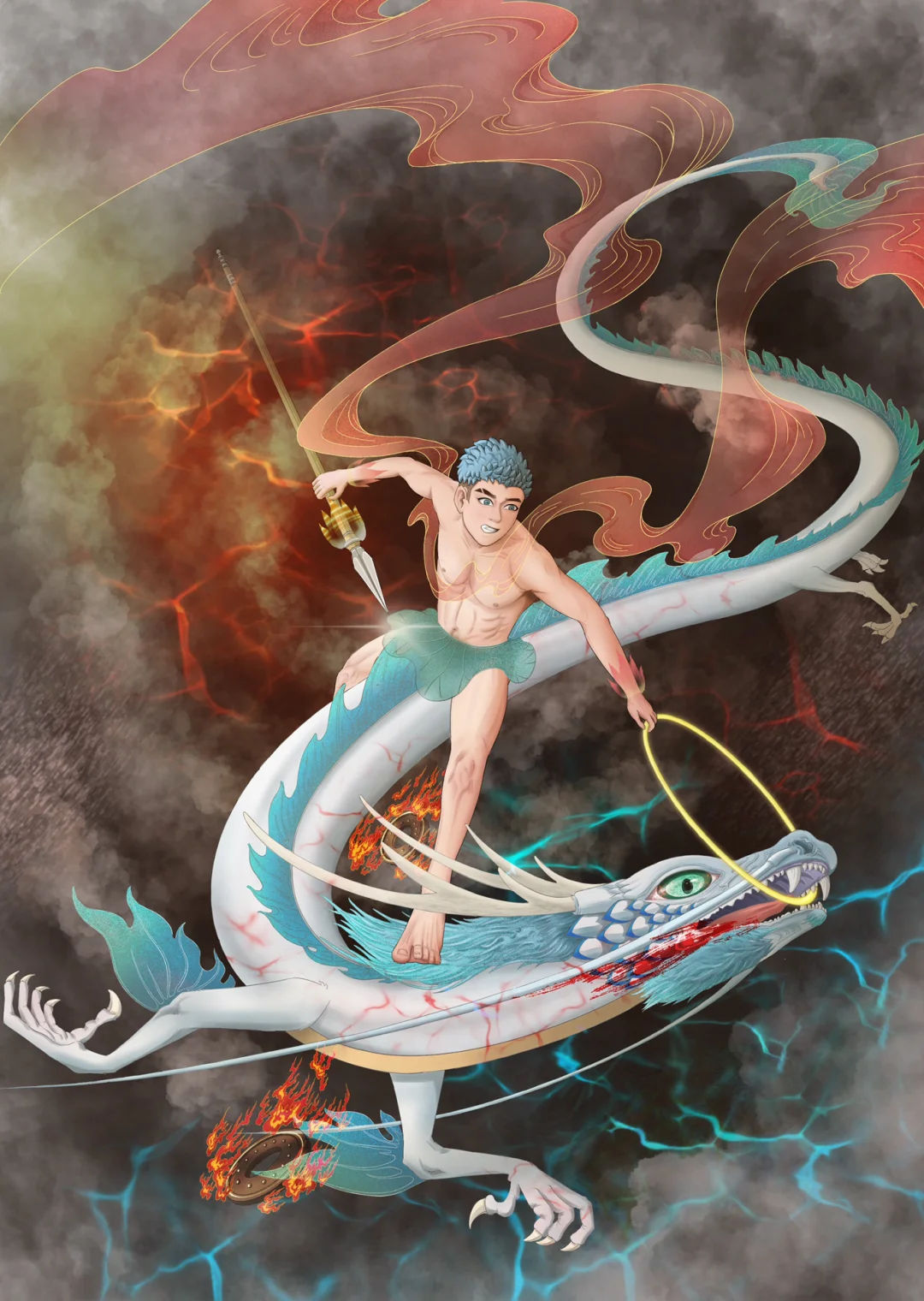 哪吒 这张腰画长了,差点想建立选区挪一下