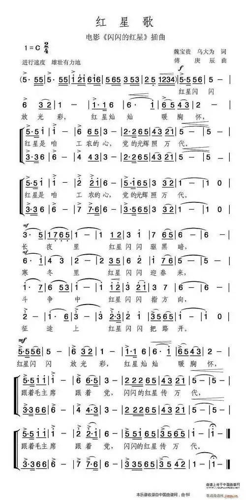 名歌[红星歌 影片(闪闪的红星)题歌]乐谱