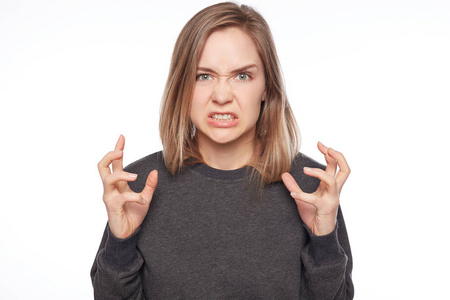 愤怒,女人,牙齿,健身,情绪,隔绝,白色背景不满,一个,男人特写,暴躁