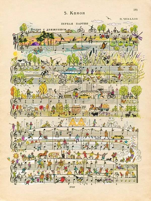 俄罗斯插画家 lena erlich 在乐谱上的创作