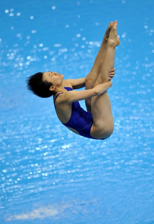 图文:跳水墨西哥站女子10米台 王鑫空中抱膝