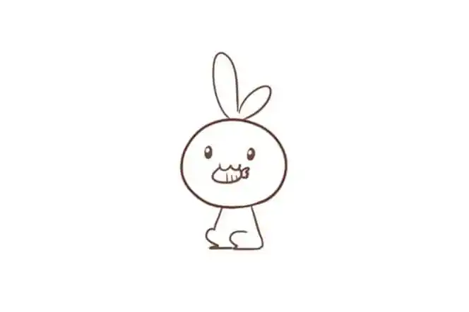 1可爱的小兔子简笔画:先画兔子的两只耳朵,再画脑袋和身体的轮廓,再画