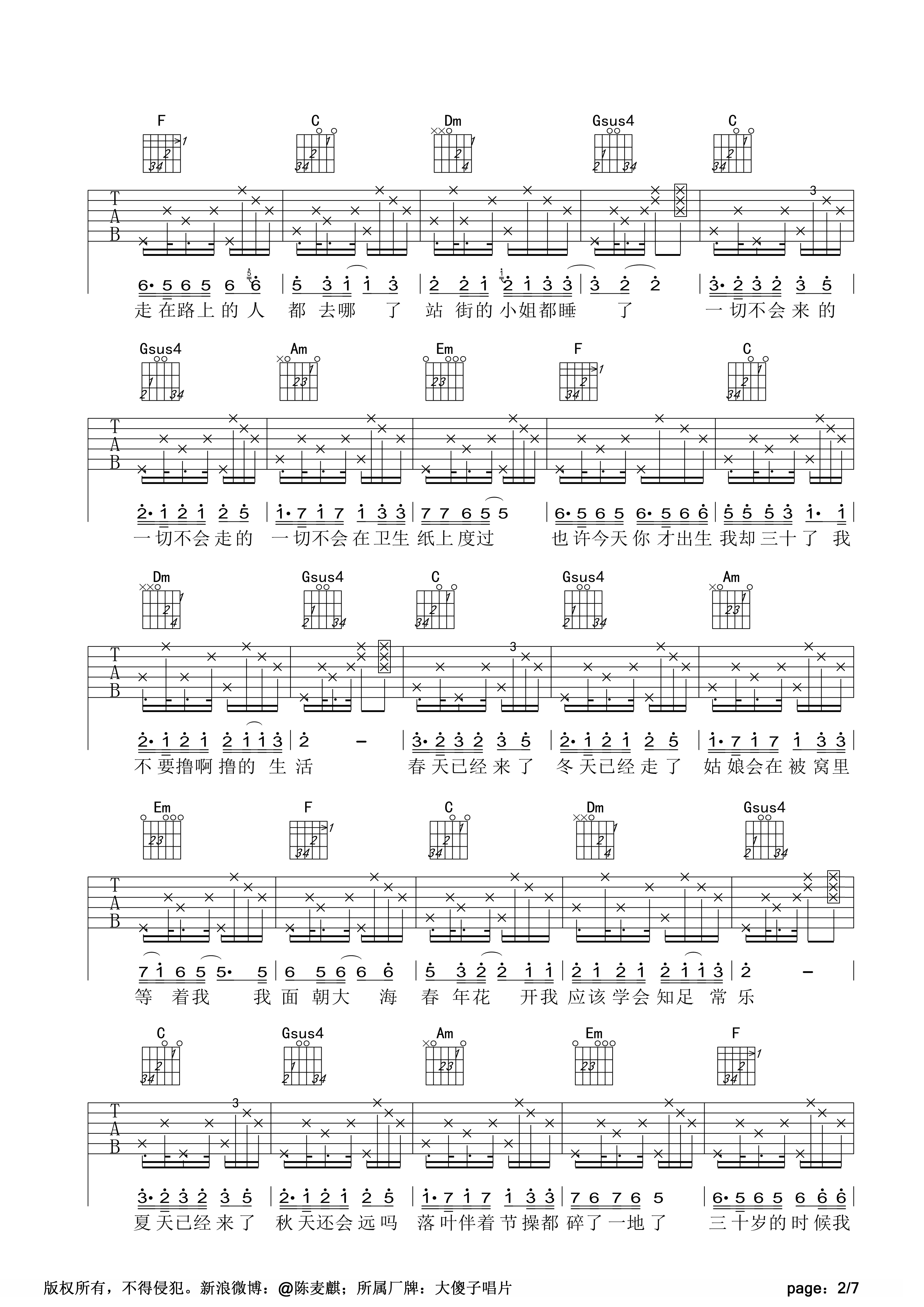 三十(专辑《三十》陈麦麒)吉他谱(图片谱,吉他,弹唱,指弹)_陈麦麒