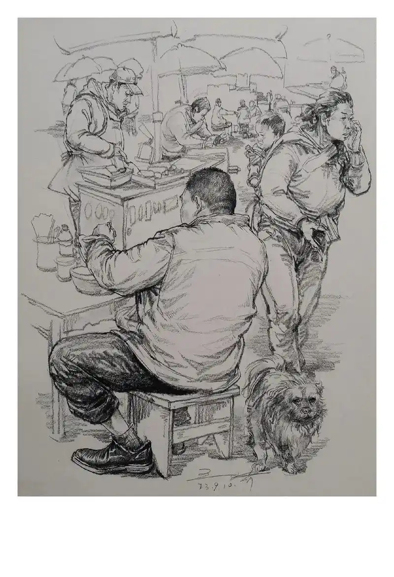 祝自己节日快乐.速写多人场景步骤#画画 #美术生 #速写 # - 抖音