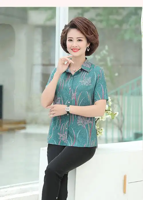 老年人夏装女衬衫妈妈短袖奶奶装老人衣服夏天高贵洋气太太60岁70