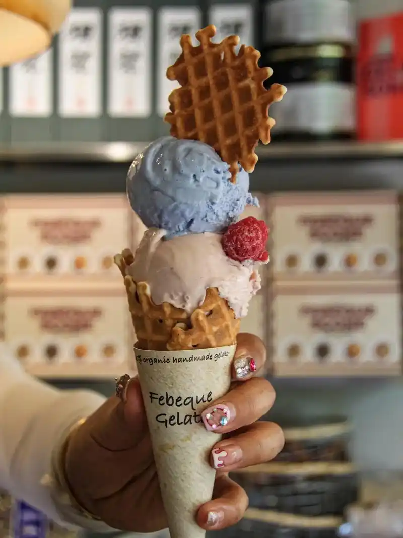 吃到了来自意大利的手作蛋卷冰淇淋.