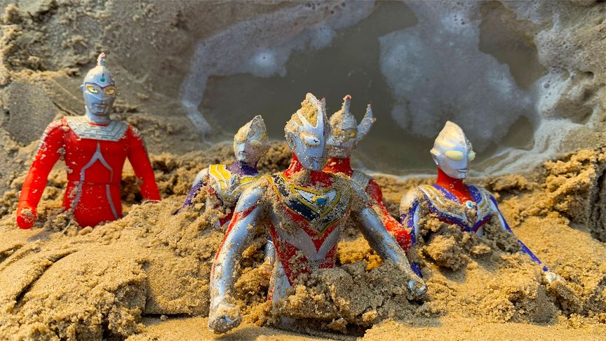 奥特曼沙滩发现金字塔迪迦宝藏 挖出了奥特之父捷德和最强欧布