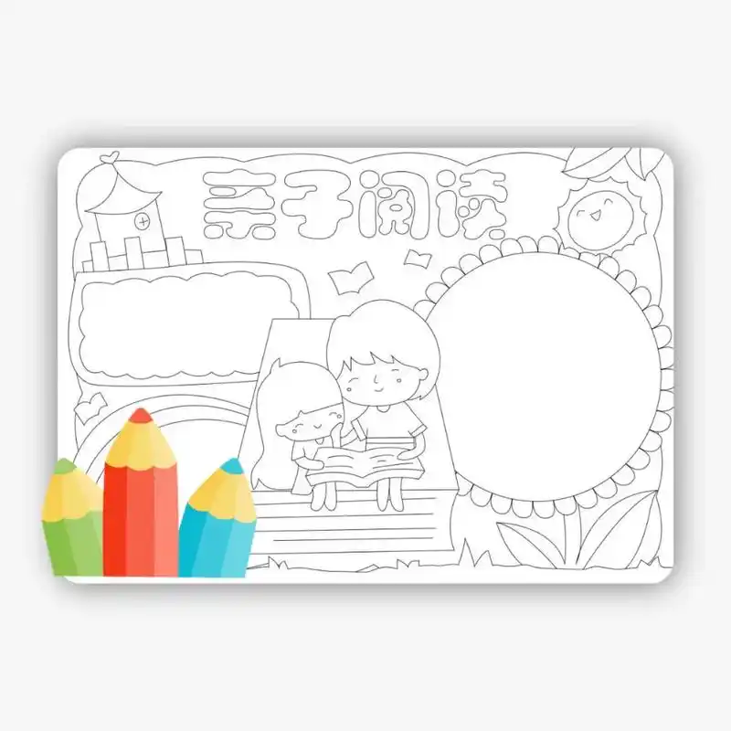 x03-40亲子阅读手抄报电子版黑白线稿可以打印涂色,亲子阅 - 抖音