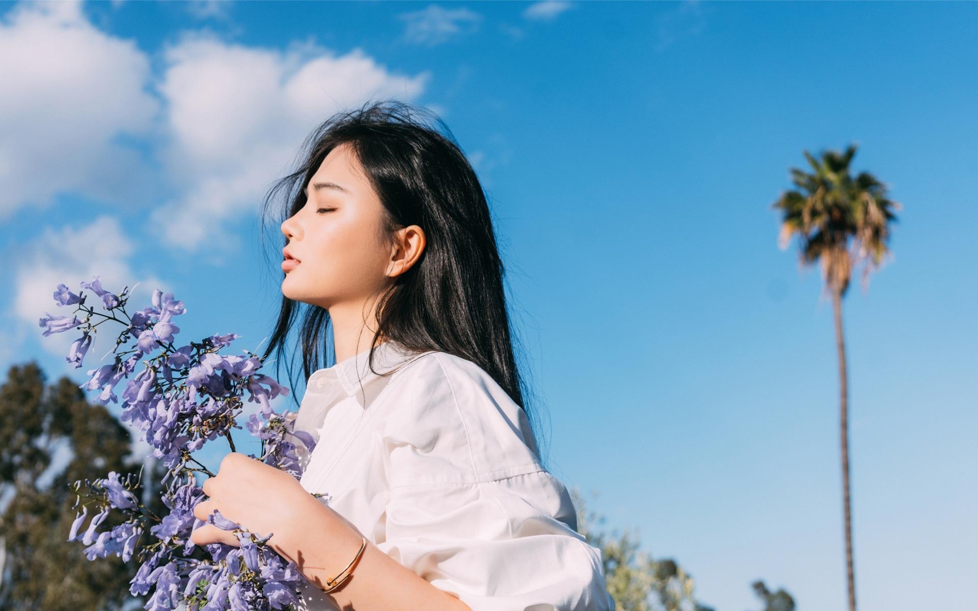 绚美夏花女孩闭眼唯美电脑桌面壁纸_美女壁纸_壁纸下载_美桌网