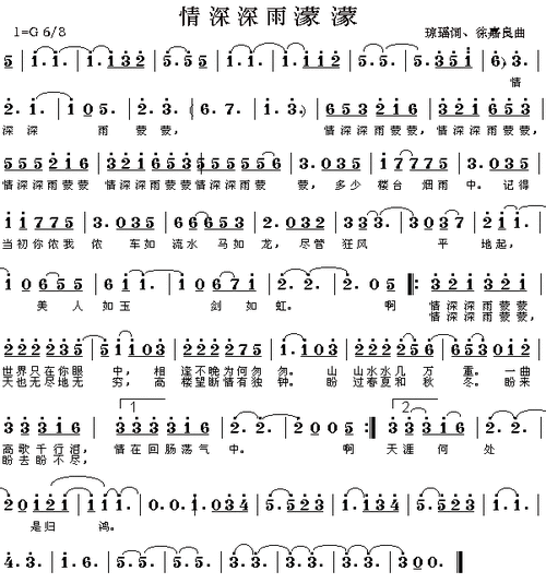 情深深雨蒙蒙(同名电视剧片头曲)_简谱_搜谱网