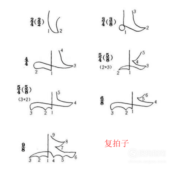 不同的节拍,挥舞指挥棒的方式有很大区别,这叫做指挥图示.
