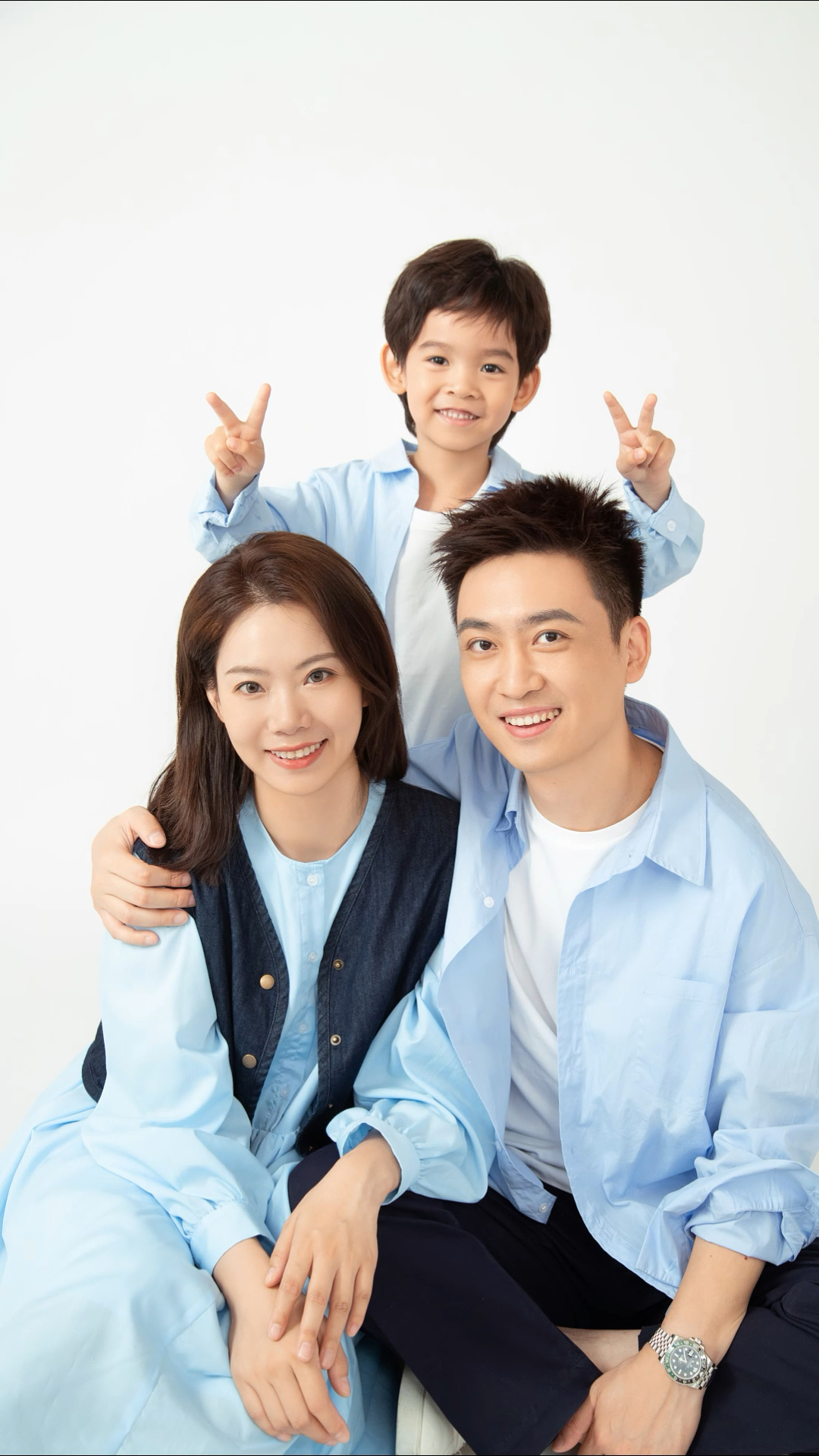 棚拍休闲装一家三口照片