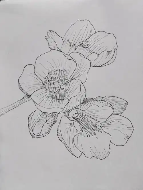 俞致贞工笔花鸟白描底稿海棠花西府海棠斗方小品册页jv46